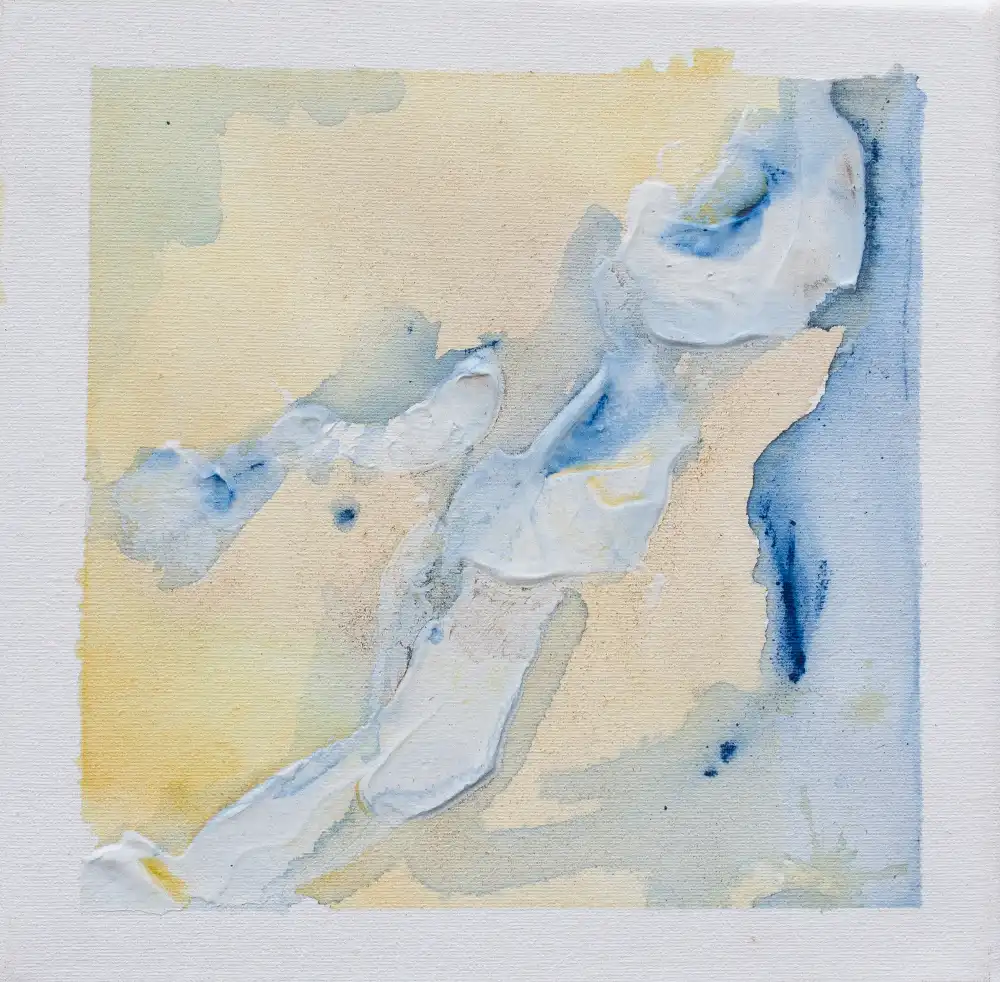Esta pieza de arte texturizado, con un significado a libre interpretación, utilizan relieve y figuras fluidas abstractas. Presentando un relieve elevado elaborado con pasta de modelar permitiendo una interacción con el tacto e intervenido con colores arena y azules hechos con tintas naturales como el de la flor de hibiscus.