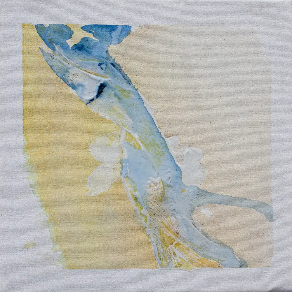 Esta pieza de arte texturizado, con un significado a libre interpretación, utiliza relieve y figuras fluidas abstractas. Presentando un relieve elevado elaborado con pasta de modelar permitiendo una interacción con el tacto e intervenido con colores arena y azules hechos con tintas naturales como el de la flor de hibiscus y café.